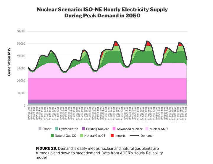 Nuclear scenario: This scenario uses existing gas and builds new natural gas and nuclear plants to meet demand, with nuclear accounting for 90 percent of the electricity mix by 2050.